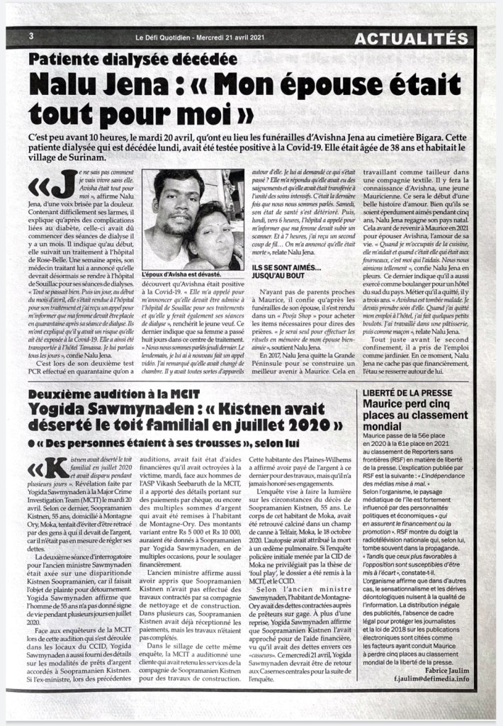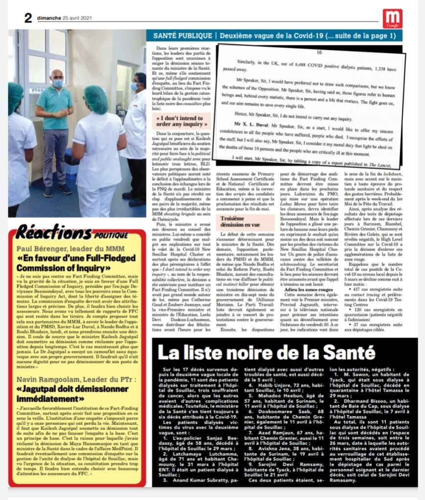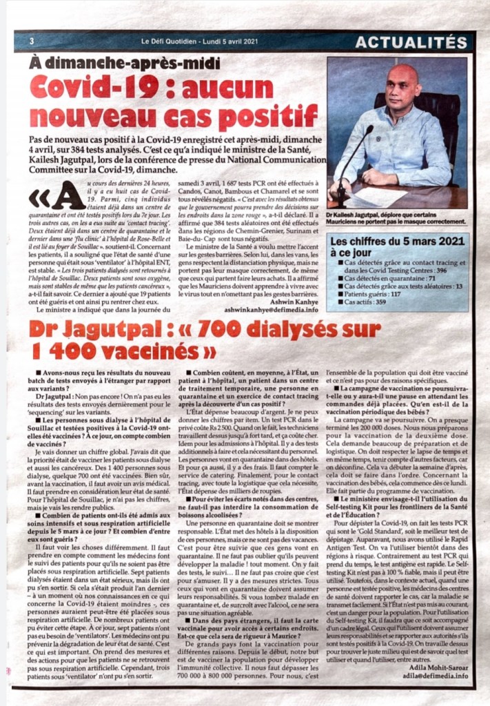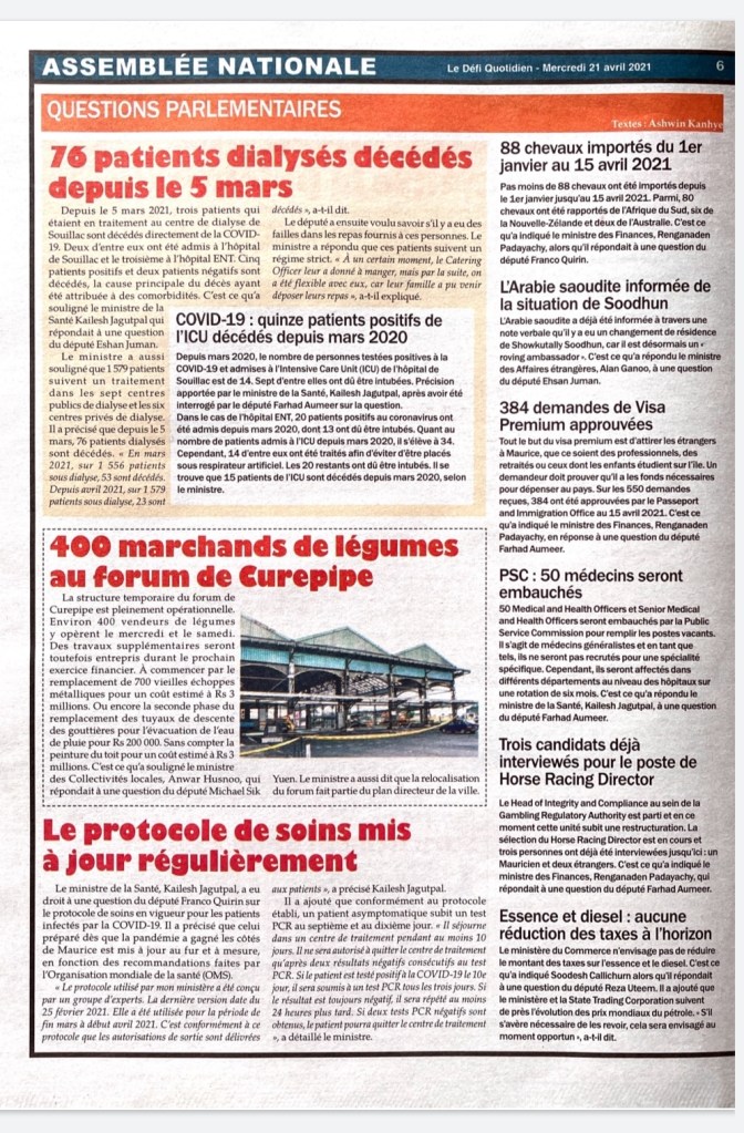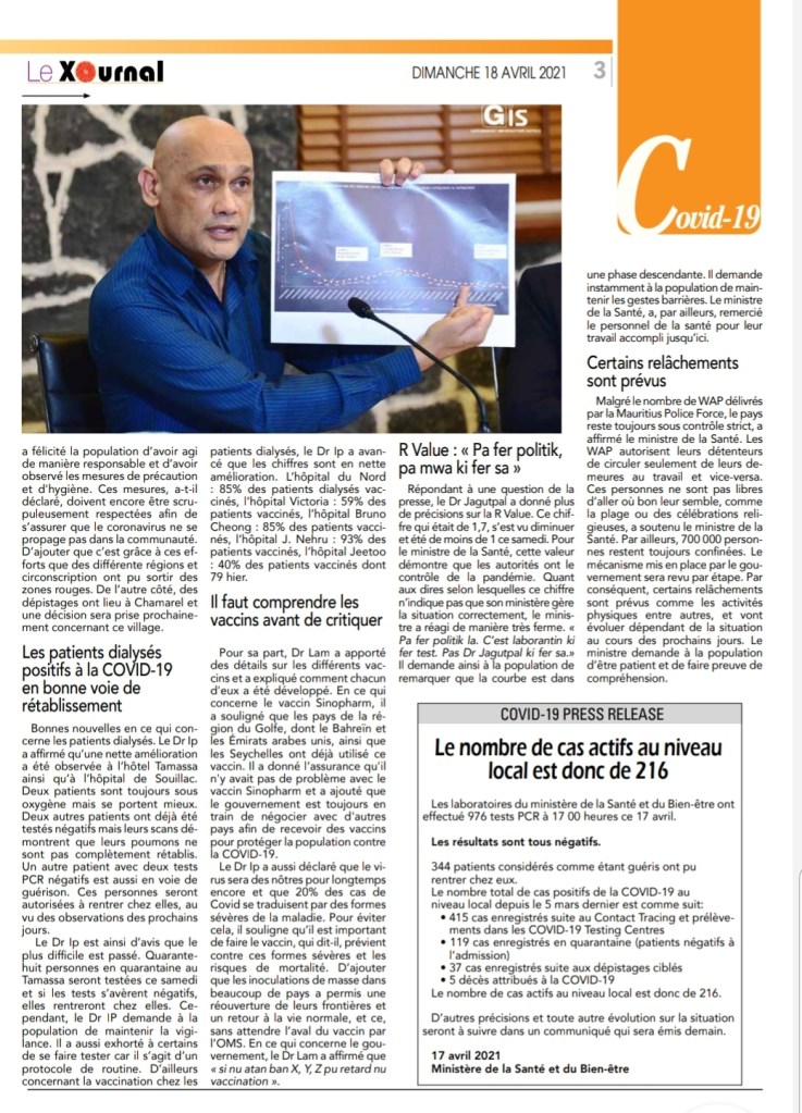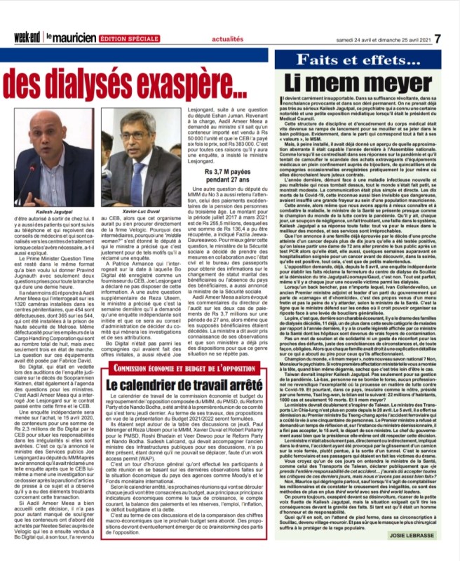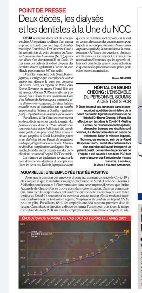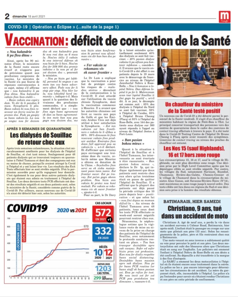 Le Mauricien 10 April 2021
