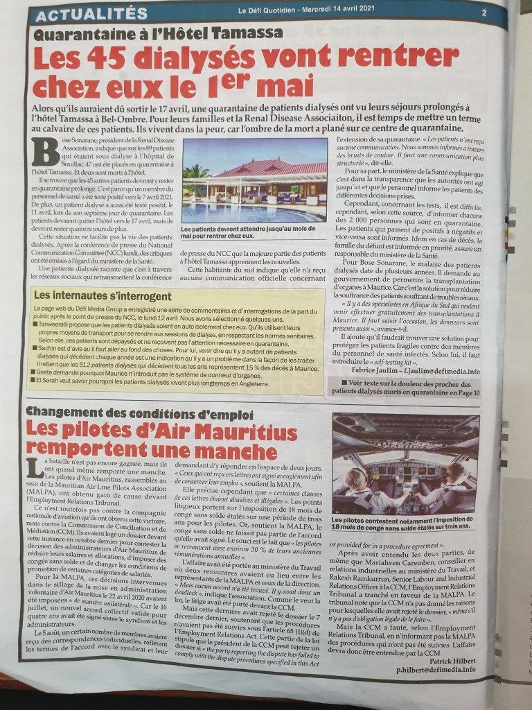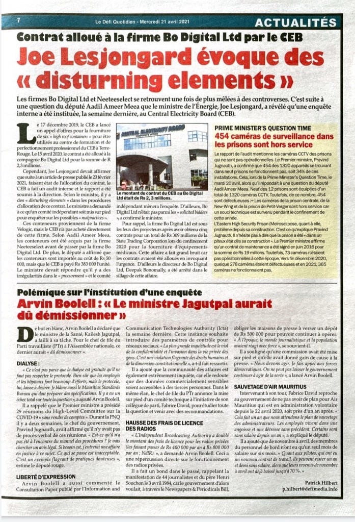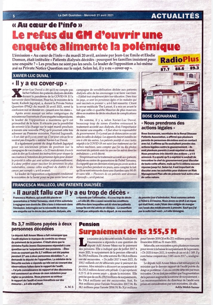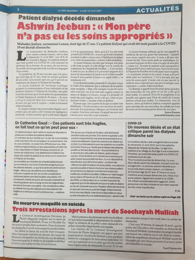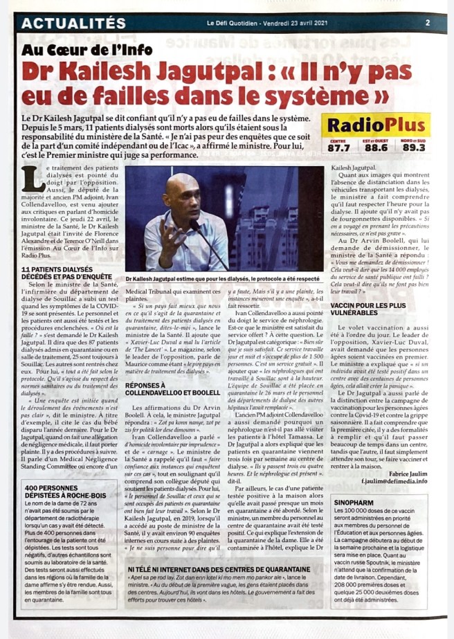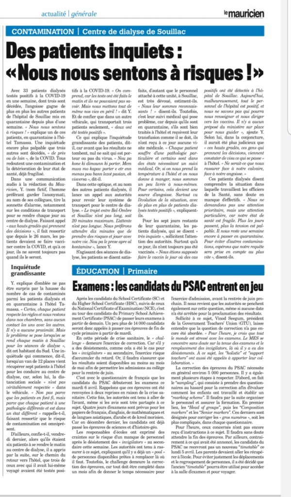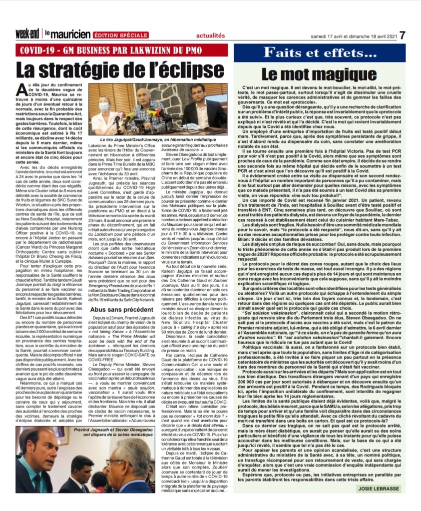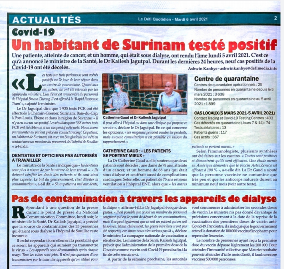 Le Mauricien 10 April 2021