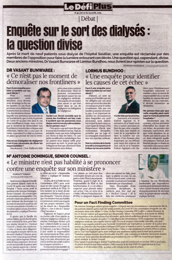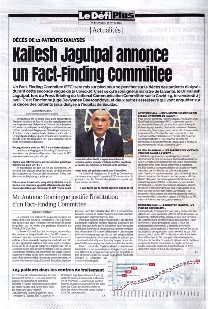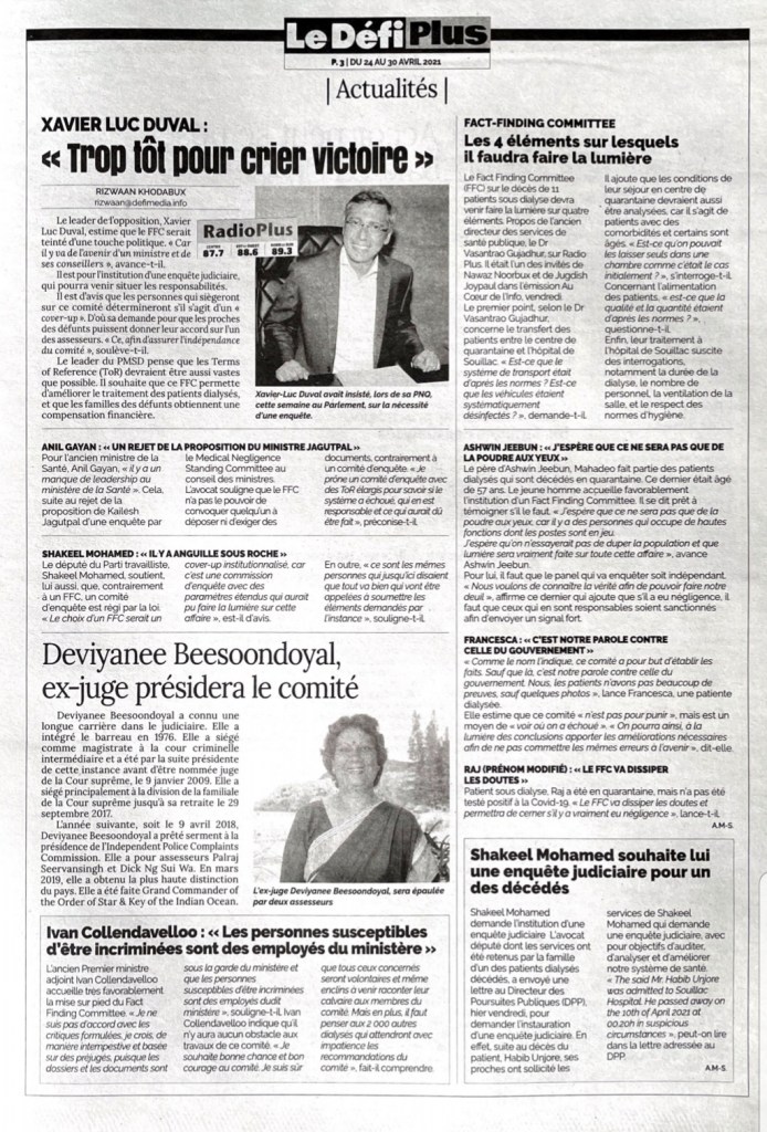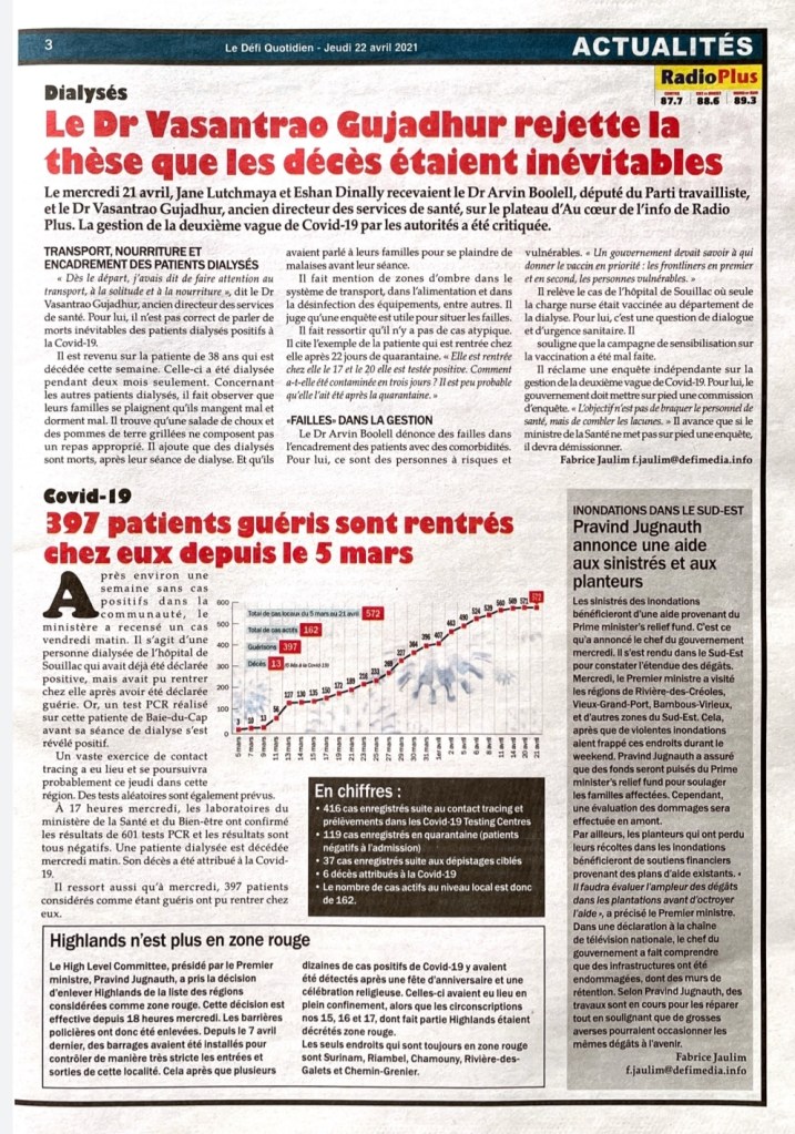 Le Mauricien 22 April 2021