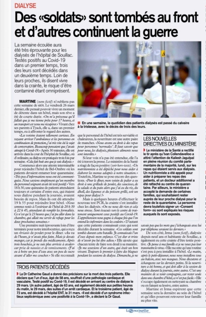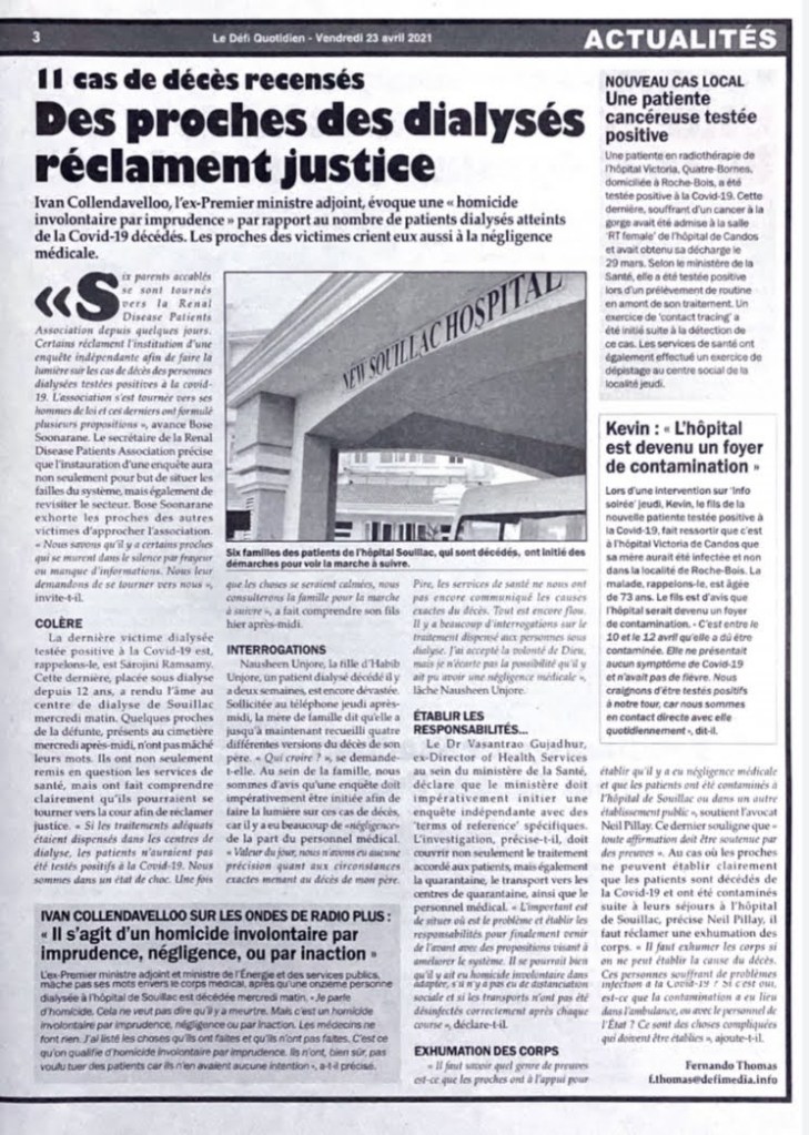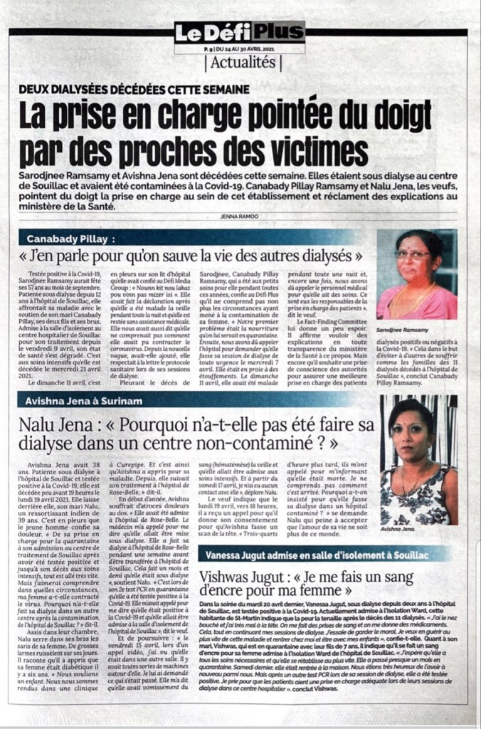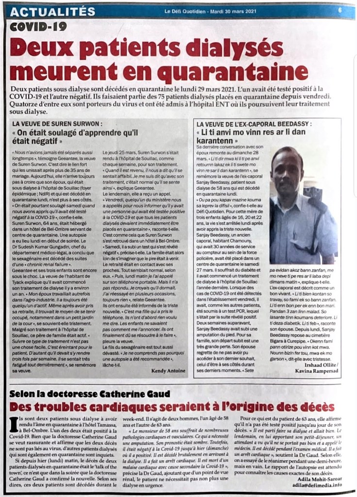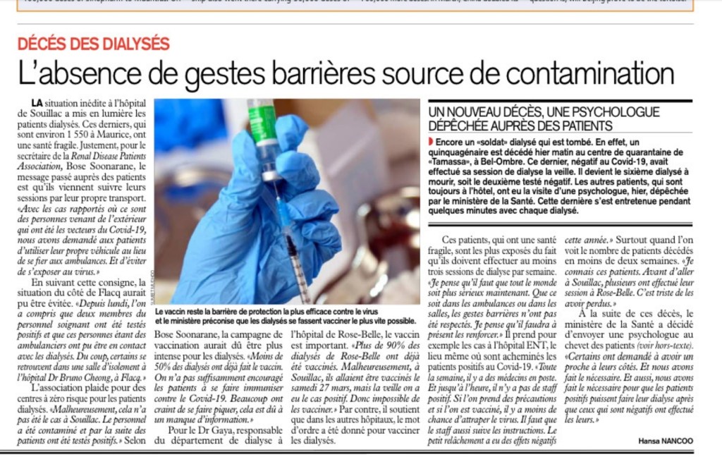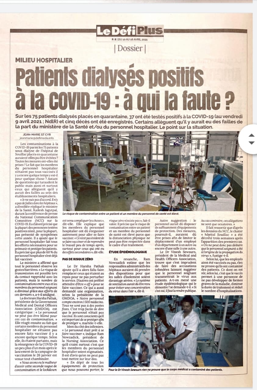 COVID-19 : Le Dr Jagutpal annonce deux décès chez les patients sous dialyse à l’hôpital de Souillac