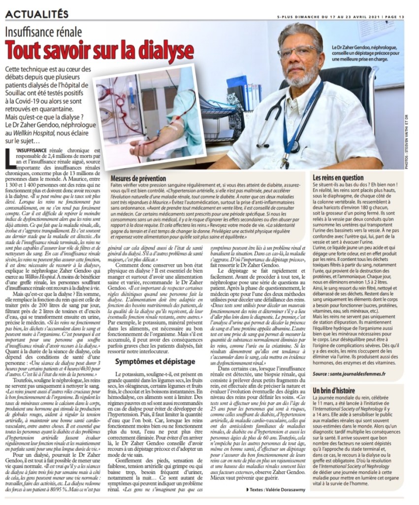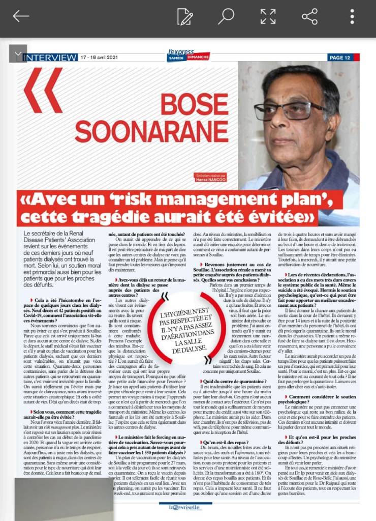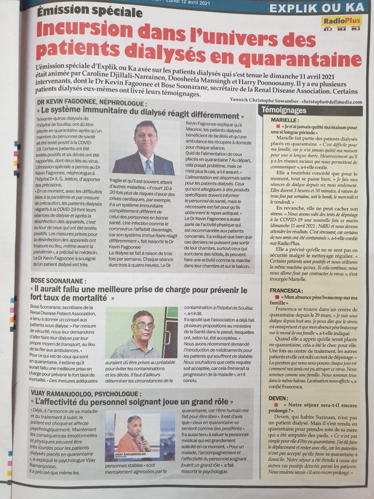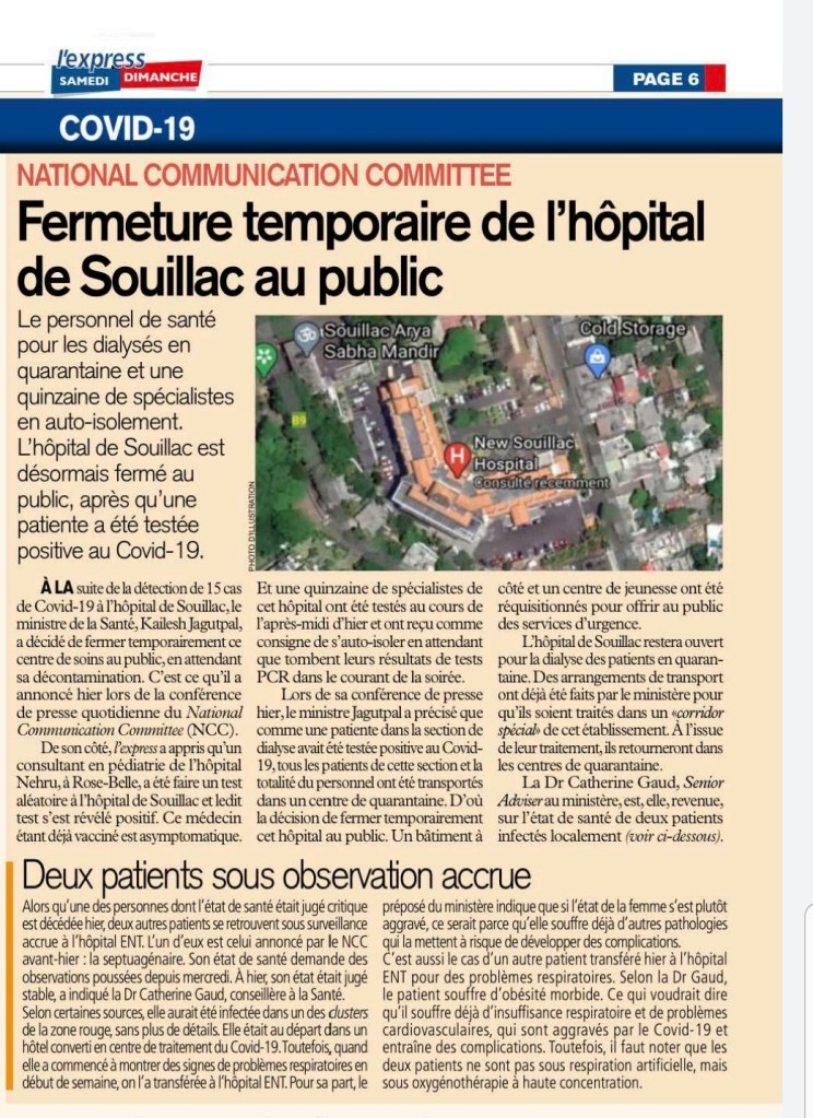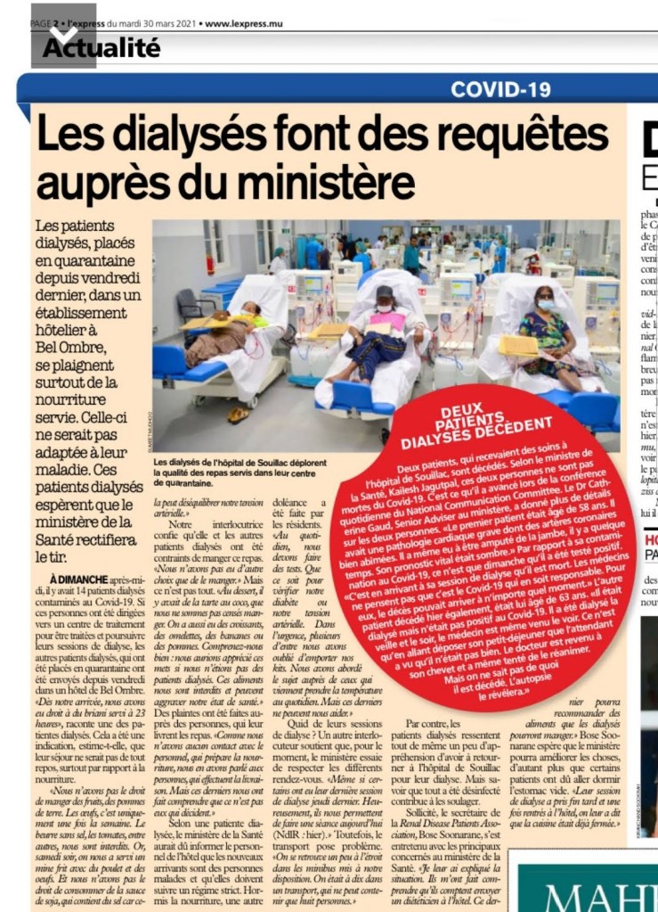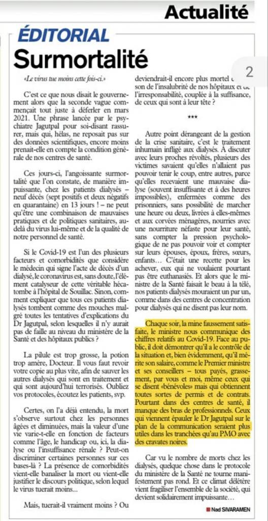 COVID-19 : Le Dr Jagutpal annonce deux décès chez les patients sous dialyse à l’hôpital de Souillac