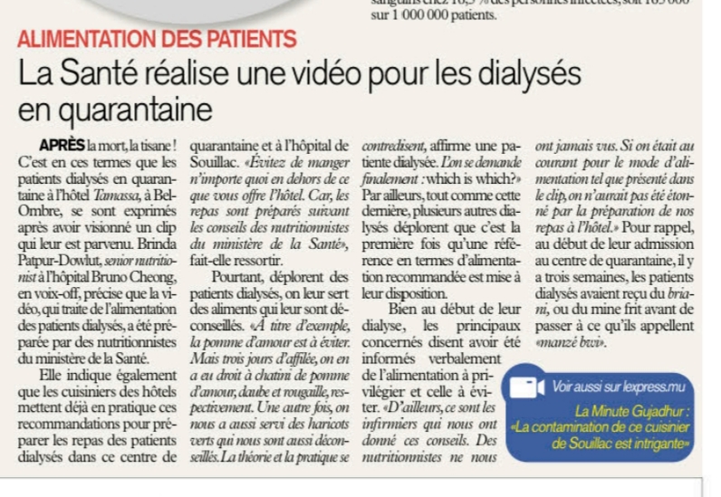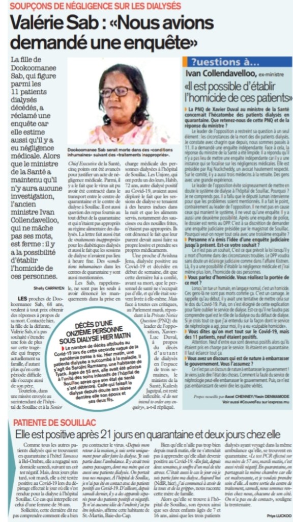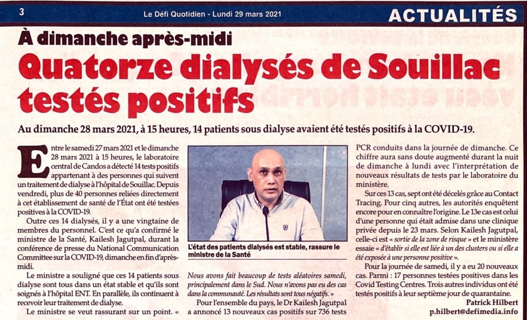 Patiente dialysée positive : la probabilité que ce soit un cas local est «moindre», selon le Dr Gujadhur