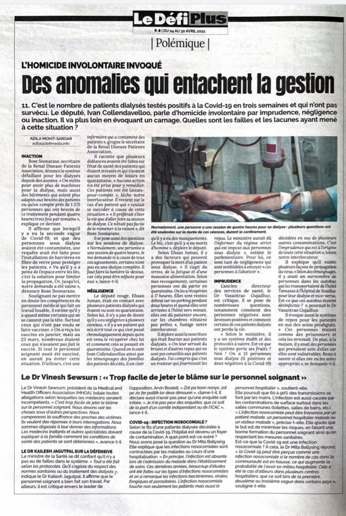AVEU DE TAILLE DU DR IP SUR LE DÉCÈS DES PATIENTS DIALYSÉS : « UNE TRAGÉDIE SANS PRÉCÉDENT »