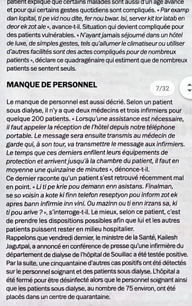 COVID -19 : Des patients dialysés de l’hôpital Dr Bruno Cheong finalement en isolation spéciale