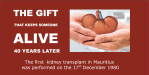 The 40th Anniversary of the First Kidney Transplant in Mauritius - Today is a very special day to commemorate. Forty years ago, on the 17th December, the first kidney transplant was performed in Mauritius. There are many remarkable aspects to this story. The surgery was performed in the Clinique Mauricienne by Dr Mahen Modun, urologist and Dr Marcello Li Sung Sang, nephrologist, both recently back from … Continue reading The 40th Anniversary of the First Kidney Transplant in Mauritius